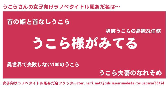 | ヘコむあだ名 | 『うこぷりん』『うこら(笑)』 |