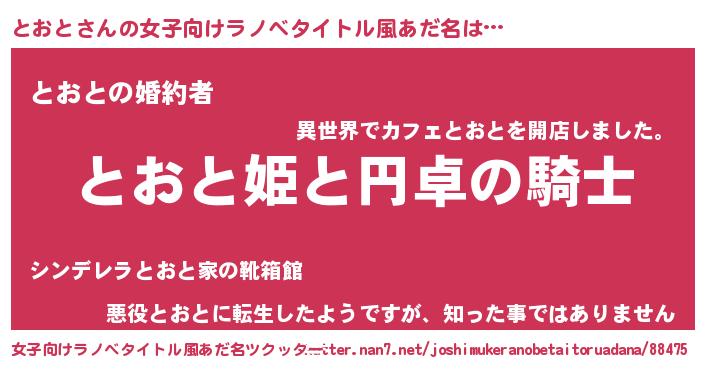 | 胡散臭い通販商品みたいなあだ名 | 『モテモテ間違いなし水晶球…その名も「とおと」』 |
