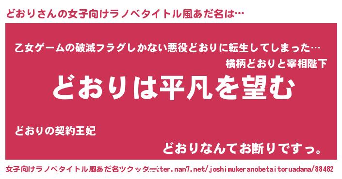 | ヘコむあだ名 | 『どおを』『どおり(遠い目)』 |