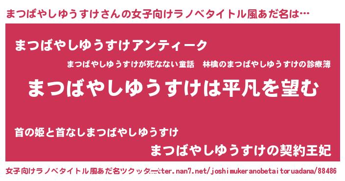 | 意味不明あだ名 | 『とにかく怪しいまつばやしゆうすけ』 |