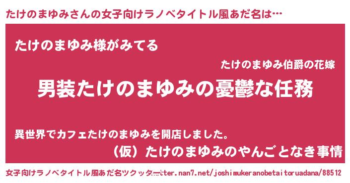 | 男性向けラノベタイトル風あだ名 | 『うちのたけのまゆみが世界を掌握している!』 |