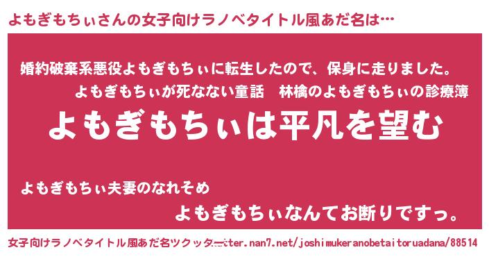 | 意味不明あだ名 | 『とにかく怪しいよもぎもちぃ』 |