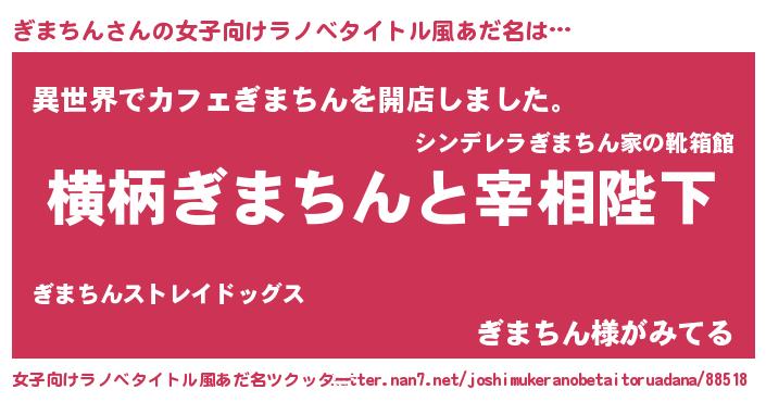 | 男性向けラノベタイトル風あだ名 | 『ぎまちんに滅ぼされるだけの簡単なお仕事です』 |