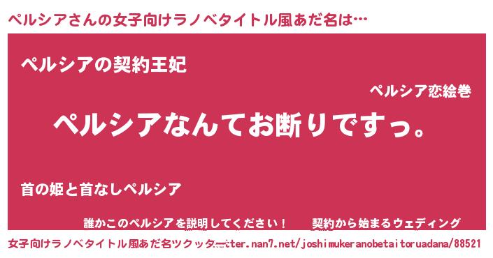 | 男性向けラノベタイトル風あだ名 | 『魔法科高校のペルシア』 |