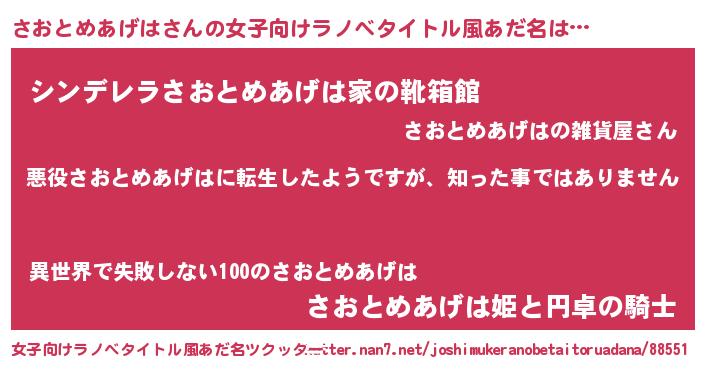 | 意味不明あだ名 | 『住所不定無職さおとめあげは(77歳)』 |