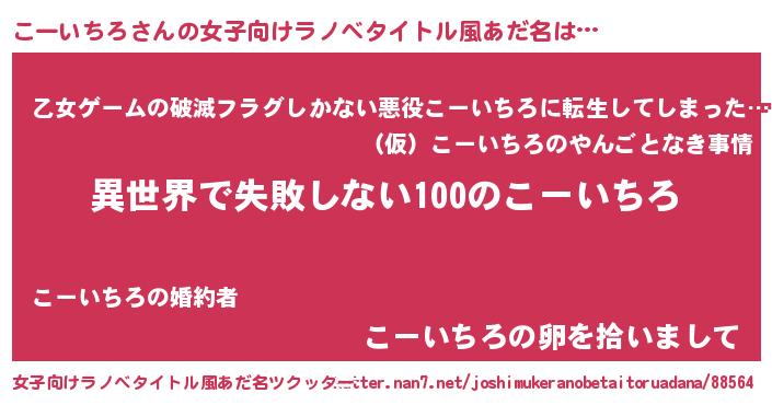 | 男性向けラノベタイトル風あだ名 | 『こーいちろという概念が存在しない退屈な世界 』 |