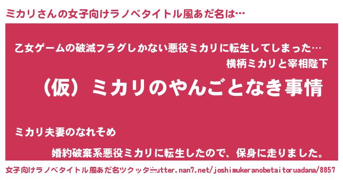 | ヘコむあだ名 | 『ミカにー』『つくし』『ミカぷりん』 |