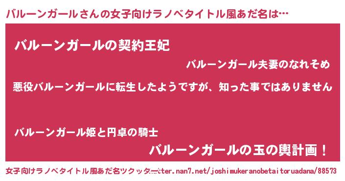 | 男性向けラノベタイトル風あだ名 | 『この素晴らしい世界にバルーンガールを!』 |