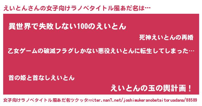 | 男性向けラノベタイトル風あだ名 | 『魔弾の王とえいとん』 |