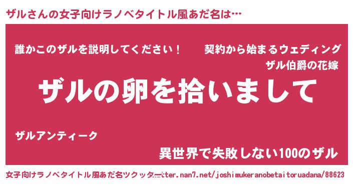 | 男性向けラノベタイトル風あだ名 | 『ザルの嫁は女の子じゃないと思った?』 |