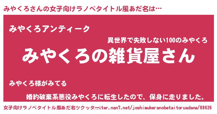 | 男性向けラノベタイトル風あだ名 | 『やはりみやくろの青春ラブコメはまちがっている 』 |