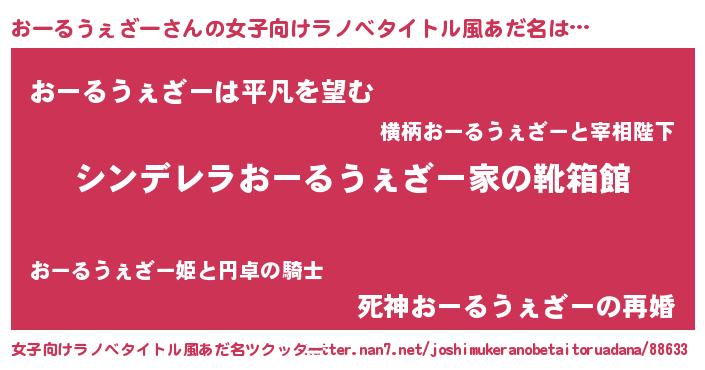 | 意味不明あだ名 | 『とにかく怪しいおーるうぇざー』 |