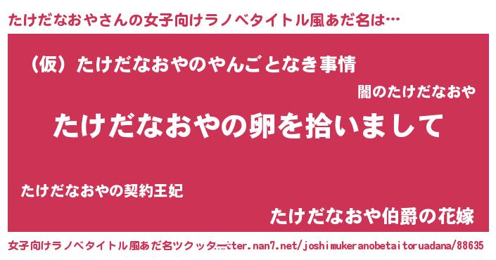 | ヘコむあだ名 | 『たけぷりん』『たけにー』 |