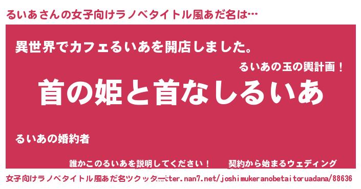 | 男性向けラノベタイトル風あだ名 | 『はたらくるいあさま!』 |