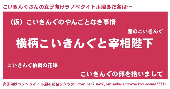 | 男性向けラノベタイトル風あだ名 | 『こいきんぐに滅ぼされるだけの簡単なお仕事です』 |