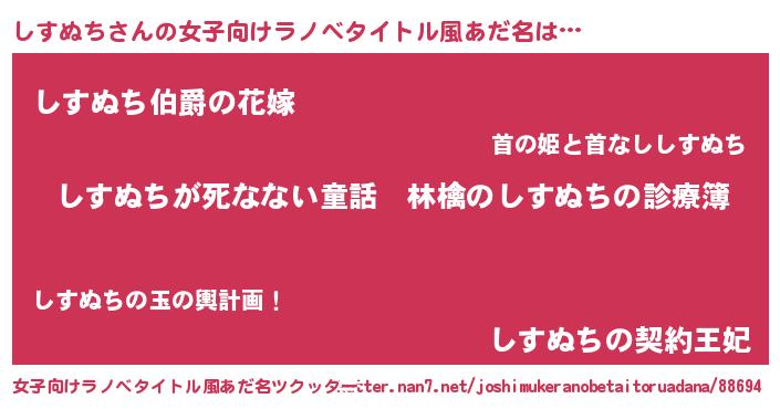 | 意味不明あだ名 | 『住所不定無職しすぬち(13歳)』 |