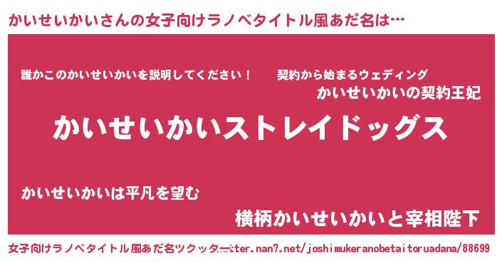 | 男性向けラノベタイトル風あだ名 | 『Re:かいせいかいから始める異世界生活』 |