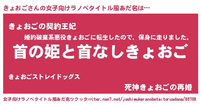 | 胡散臭い通販商品みたいなあだ名 | 『絶対に幸福をもたらす健康食品…その名も「きょおご」』 |