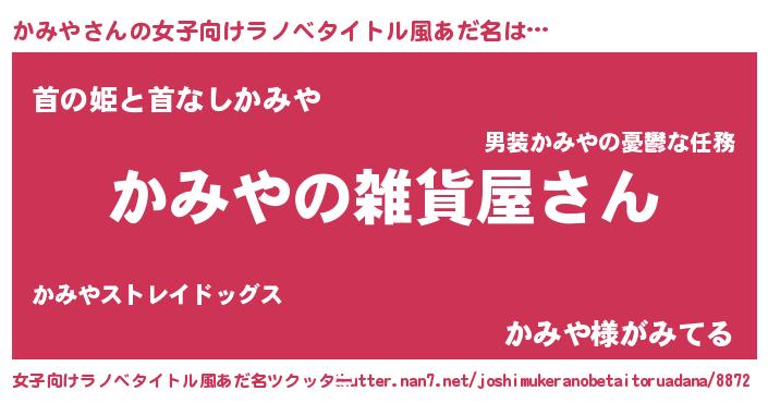 | 男性向けラノベタイトル風あだ名 | 『やはりかみやの青春ラブコメはまちがっている 』 |