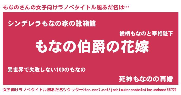 | ヒーロー風カッコイイあだ名 | 『ウルトラもなのマン』『ネオモナノ』 |