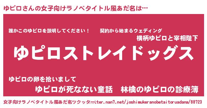 | 男性向けラノベタイトル風あだ名 | 『Re:ゆピロから始める異世界生活』 |
