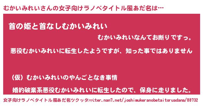 | 男性向けラノベタイトル風あだ名 | 『この素晴らしい世界にむかいみれいを!』 |