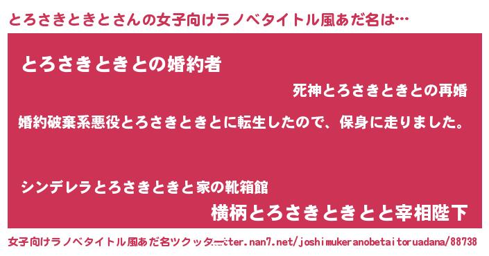 | 男性向けラノベタイトル風あだ名 | 『転生したらとろさきときとだった件』 |