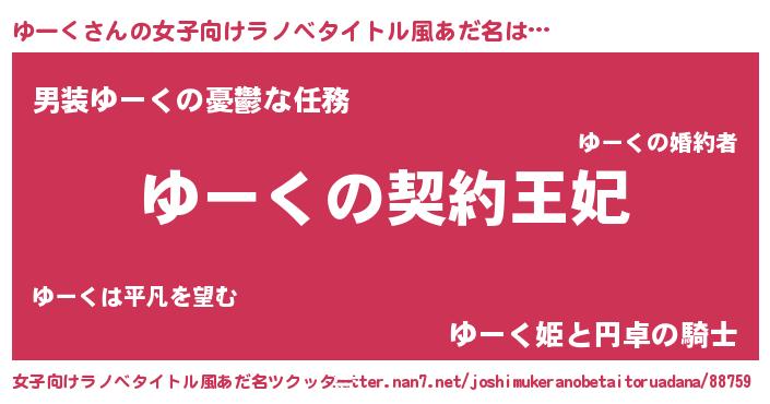 | 男性向けラノベタイトル風あだ名 | 『ゆーくという概念が存在しない退屈な世界 』 |