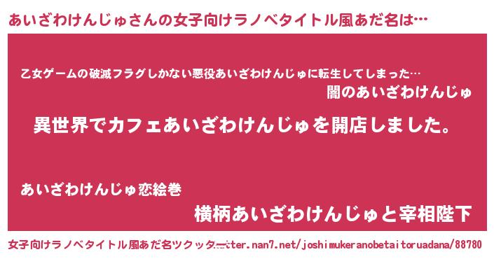 | 男性向けラノベタイトル風あだ名 | 『誰もが恐れるあのあいざわけんじゅが、ぼくの専属メイドになるようです。』 |