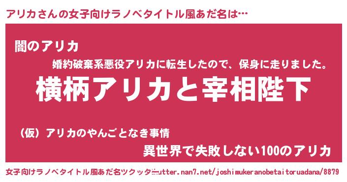 | ヘコむあだ名 | 『アリカ(苦笑)』『アリもー』 |