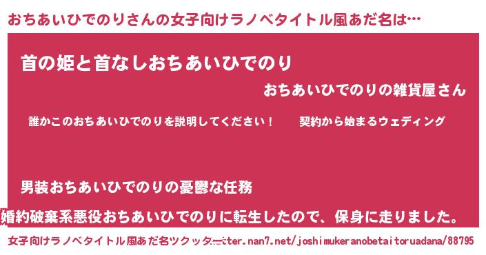 | 胡散臭い通販商品みたいなあだ名 | 『億万長者になれるブレスレット…その名も「おちあいひでのり」』 |
