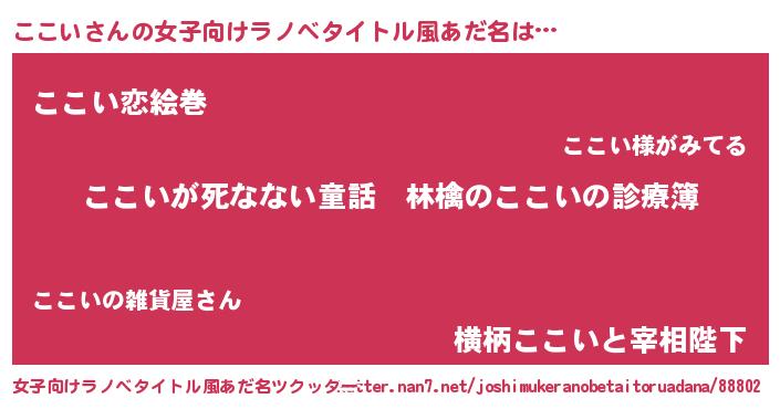 | 男性向けラノベタイトル風あだ名 | 『魔弾の王とここい』 |