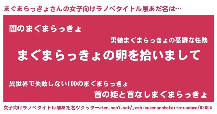 | 男性向けラノベタイトル風あだ名 | 『まぐまらっきょの嫁は女の子じゃないと思った?』 |