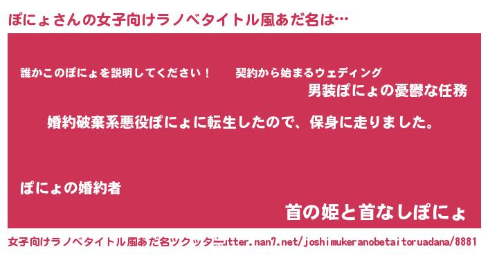 | 男性向けラノベタイトル風あだ名 | 『ポニョスレイヤー』 |