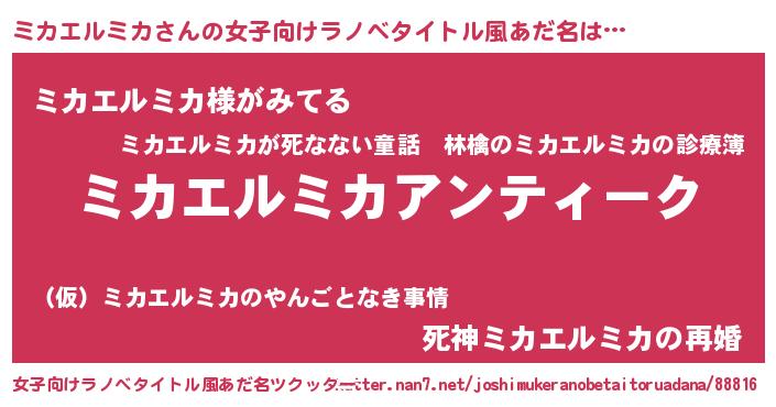 | 意味不明あだ名 | 『自称ミカエルミカ』 |