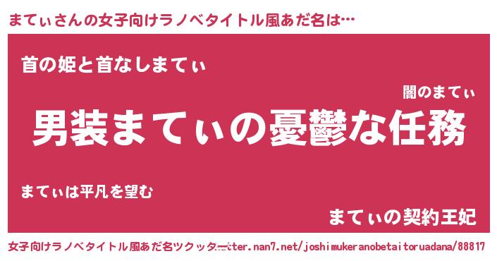 | 男性向けラノベタイトル風あだ名 | 『うちのまてぃが世界を掌握している!』 |