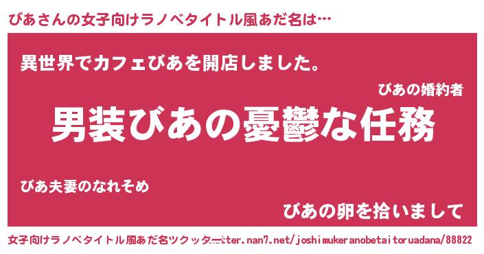 | ヘコむあだ名 | 『びあ(笑)』『びあっ子』『なまこ酢』 |