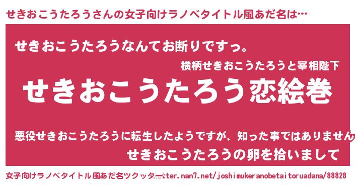 | 男性向けラノベタイトル風あだ名 | 『ノーゲーム・ノーセキオコウタロウ』 |