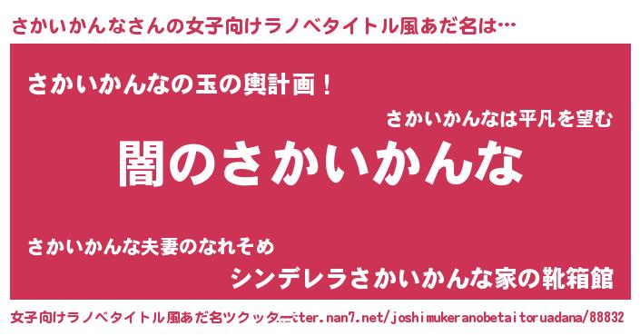 | 意味不明あだ名 | 『自称さかいかんな』 |