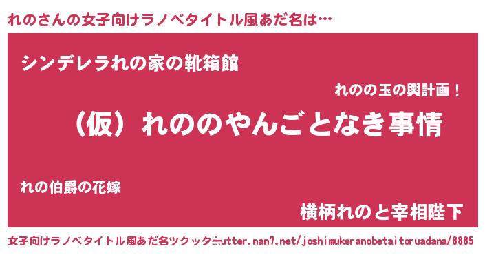 | 男性向けラノベタイトル風あだ名 | 『れのの憂鬱』『緋弾のレノ』 |