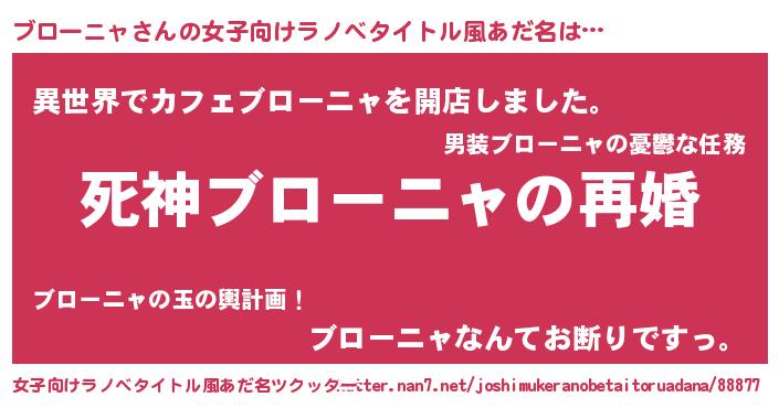| 男性向けラノベタイトル風あだ名 | 『ノーゲーム・ノーブローニャ』 |