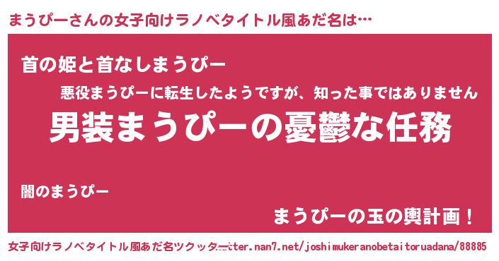 | ヘコむあだ名 | 『まうぴー(苦笑)』『まうにー』 |
