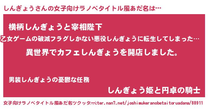 | 胡散臭い通販商品みたいなあだ名 | 『前代未聞の水素水…その名も「しんぎょう」』 |