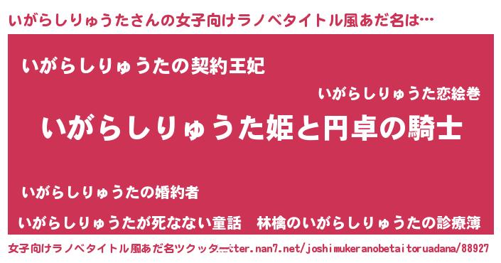 | 男性向けラノベタイトル風あだ名 | 『イガラシリュウタアートオンライン』 |