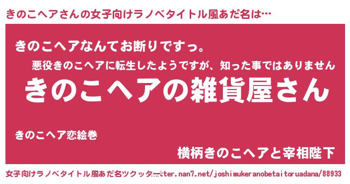 | 男性向けラノベタイトル風あだ名 | 『やはりきのこヘアの青春ラブコメはまちがっている 』 |