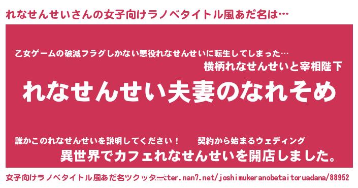 | ヒーロー風カッコイイあだ名 | 『正義の使者れなせんせい』 |