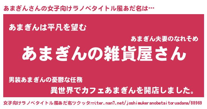 | 男性向けラノベタイトル風あだ名 | 『やはりあまぎんの青春ラブコメはまちがっている 』 |