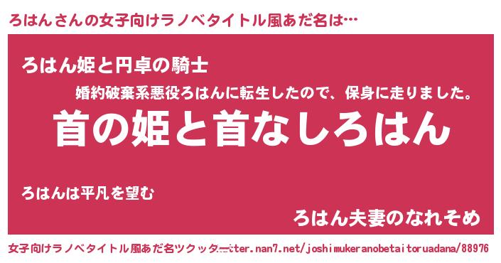 | 胡散臭い通販商品みたいなあだ名 | 『必ず成功するブレスレット…その名も「ろはん」』 |