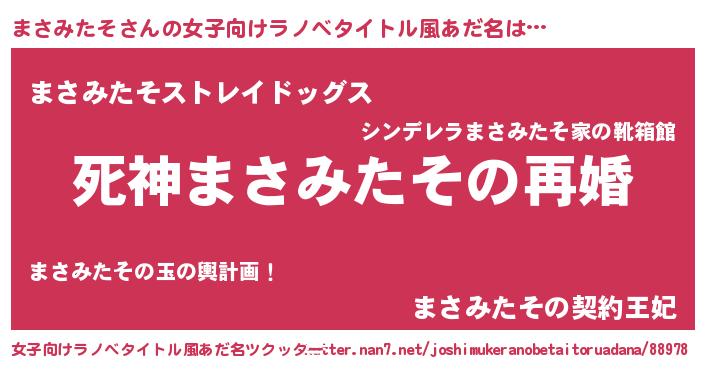 | ヒーロー風カッコイイあだ名 | 『天空の使者まさみたそ』『仮面マサダー』 |