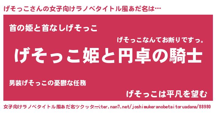 | 男性向けラノベタイトル風あだ名 | 『ゲソッコアートオンライン』 |